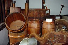 分福酒造が以前使用していた酒道具、毛塚家で使っていた物の展示をしています。