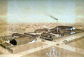 昭和50年に市内野辺町に工場が移転する前は、通りの南北の敷地の中に、倉庫や酒蔵などが並んでいました。